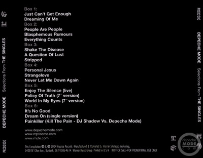 LOS ANGELES - Depeche Mode release their highly collectable singles collection on Reprise/Mute, March 30. The six box sets feature the band's biggest hit singles from 1981 to 2001, including remixes by Underworld, Automator and Plastikman.