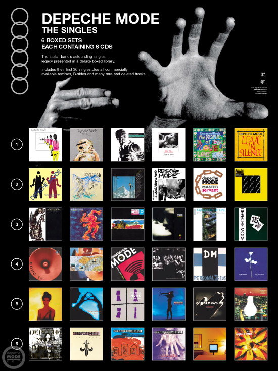 The set is comprised of six separate multi-CD volumes DEPECHE MODE SINGLES BOXES 1-6 that combine for a total of three dozen discs. The first three boxes in the set are reissues of Singles Boxes 1, 2 and 3, which were originally released in 1991.